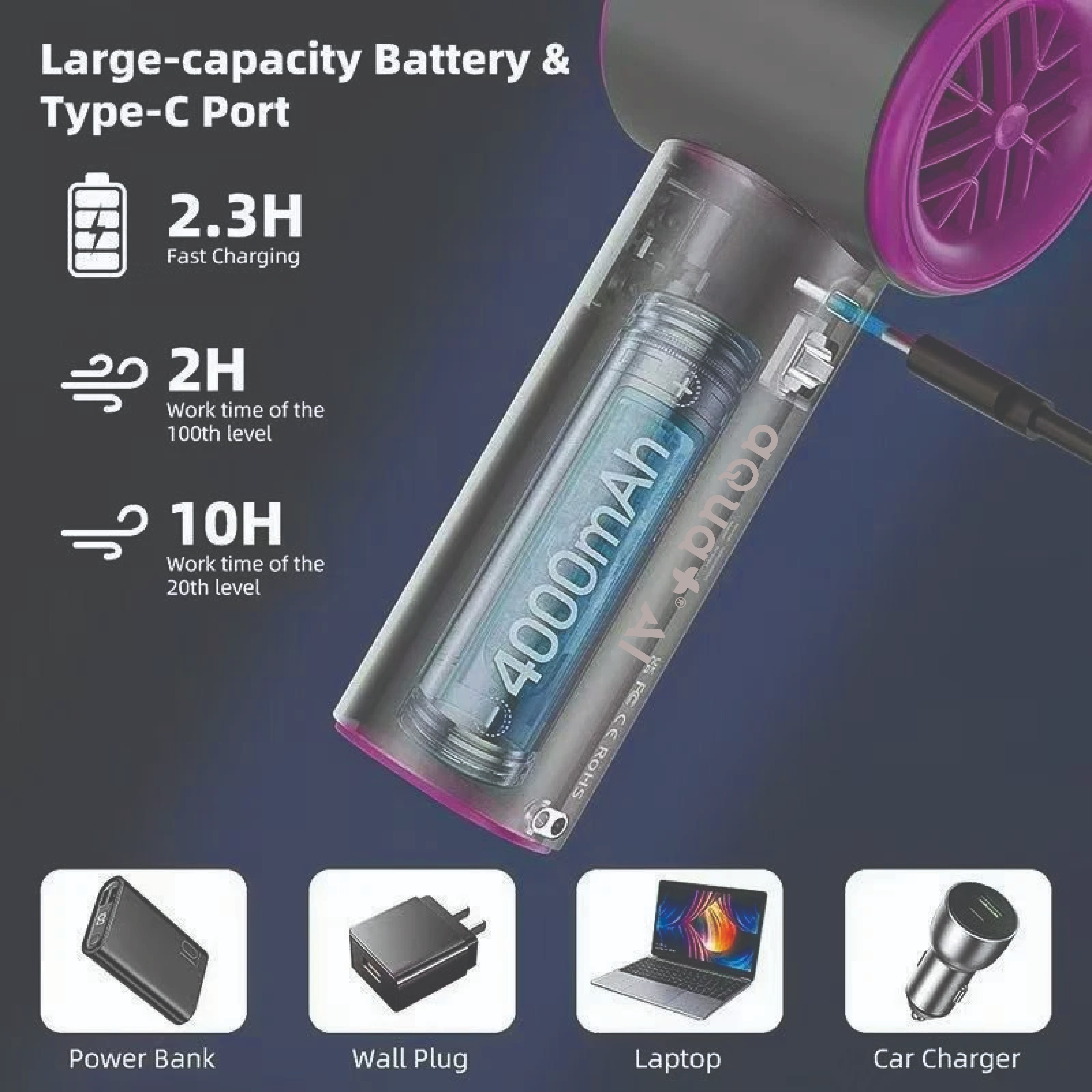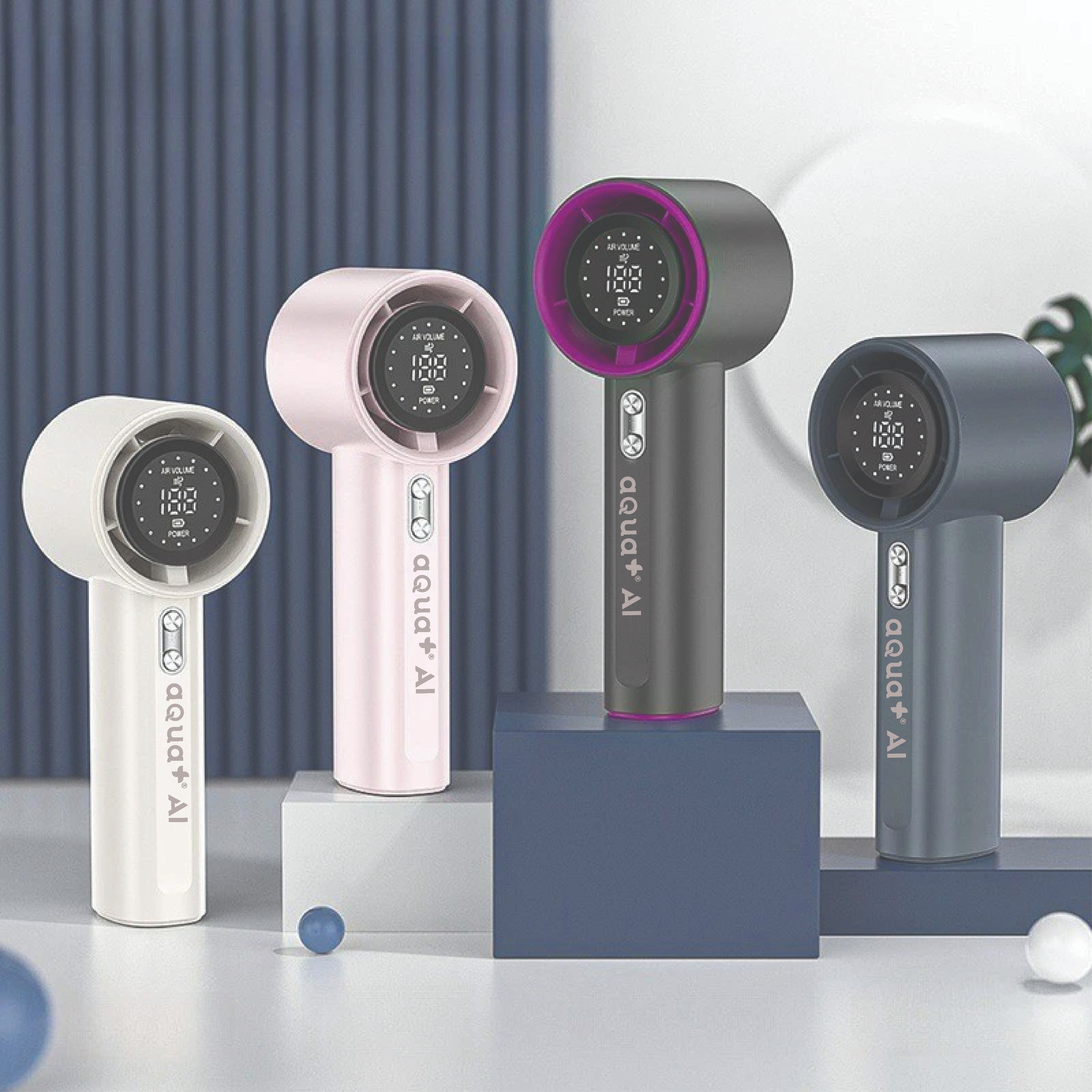 Aqua+ AI Fan Handheld Small Fan Usb Charging 100 Levels Digital Display Rechargeable High-speed